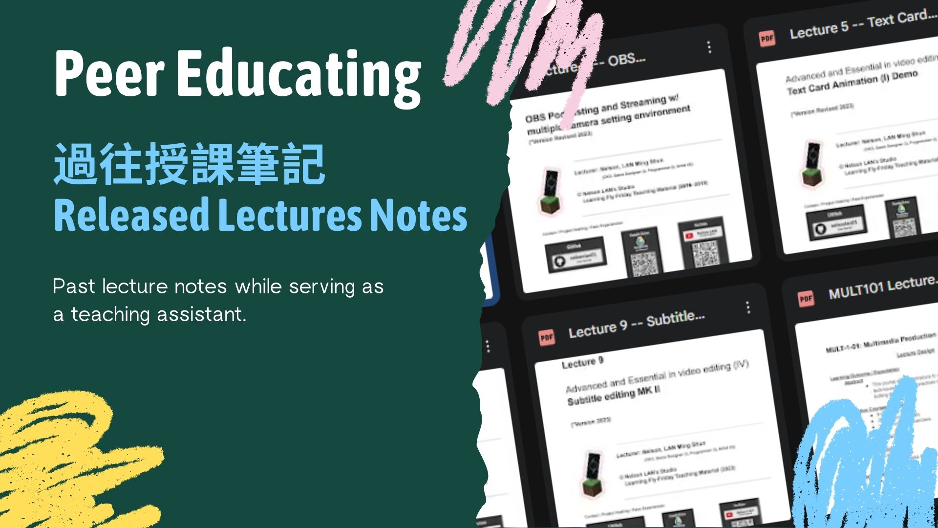 - Also served as Peer Educator (同儕導師), to improve my peers' learning abilities and grades during the computer game development higher diploma, especially for subjects requiring advanced maths, based on my strong understanding of these subjects.